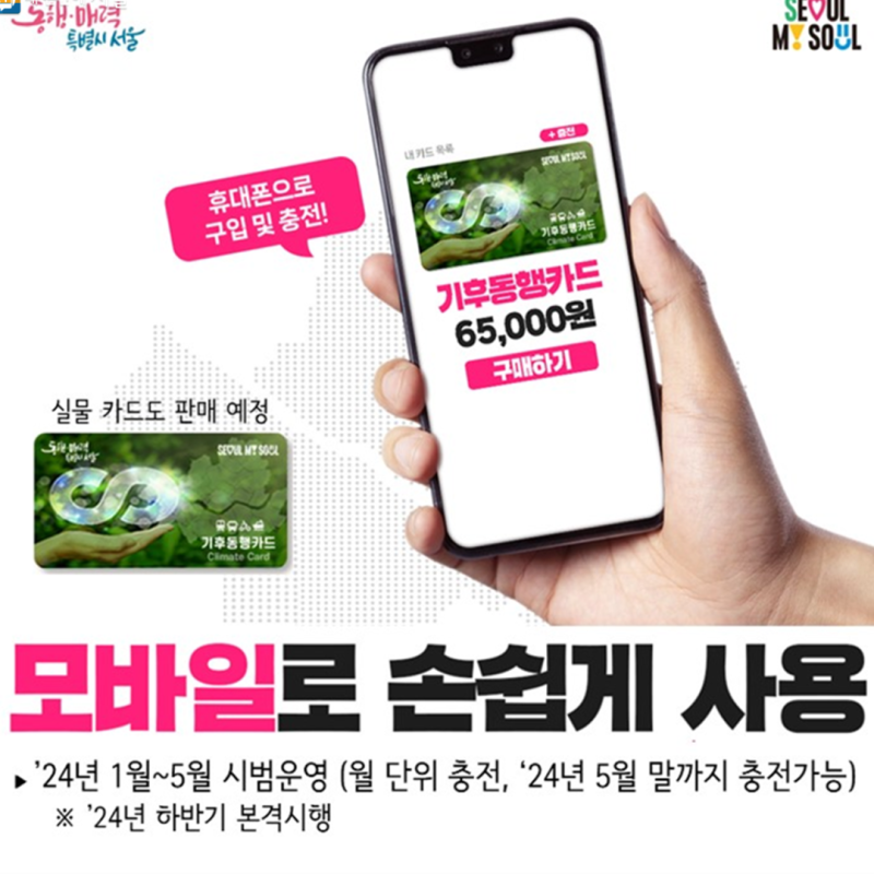 - 서울에서 시작된 기후동행카드 서비스는 월 6만 원으로 대중교통을 무제한으로 이용 가능한 정기권이다.